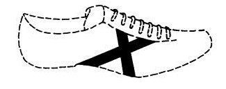 - la croix pour désigner des chaussures quand elle est appliquée à et endroit de la chaussure